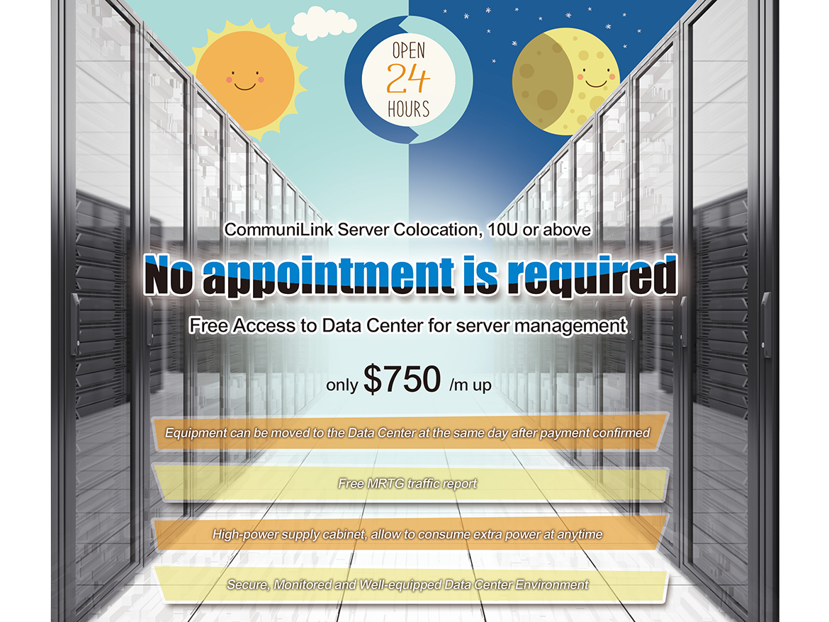 To enable full concentration on business development, CommuniLink provides highly secured and well-equipped data center, where customers are definitely confident to place their server and related facilities. For customers with high internet traffic demand, we can even provide local and overseas dedicated bandwidth. With our own two exclusive fiber optics networks, customers are privileged to have high speed and stable world-wide connection for their server.