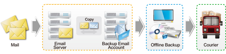 Email has become the main communication tool between customers in the E-generation. Email record is a valued property to company and enterprise because the content of it has many commercial secrets and decisions. While we couldn’t predict when the computers will out of order or there will be human mistakes happened, we should be fully prepared to avoid any accident happens. Offline Email Backup Service is the best product can help you protect your valued emails. The system will backup all accounts’ incoming emails to an offline hardware (e.g. DVD or hard disk), and then CommuniLink will regularly send you the backup offline hardware for your safekeeping and use.